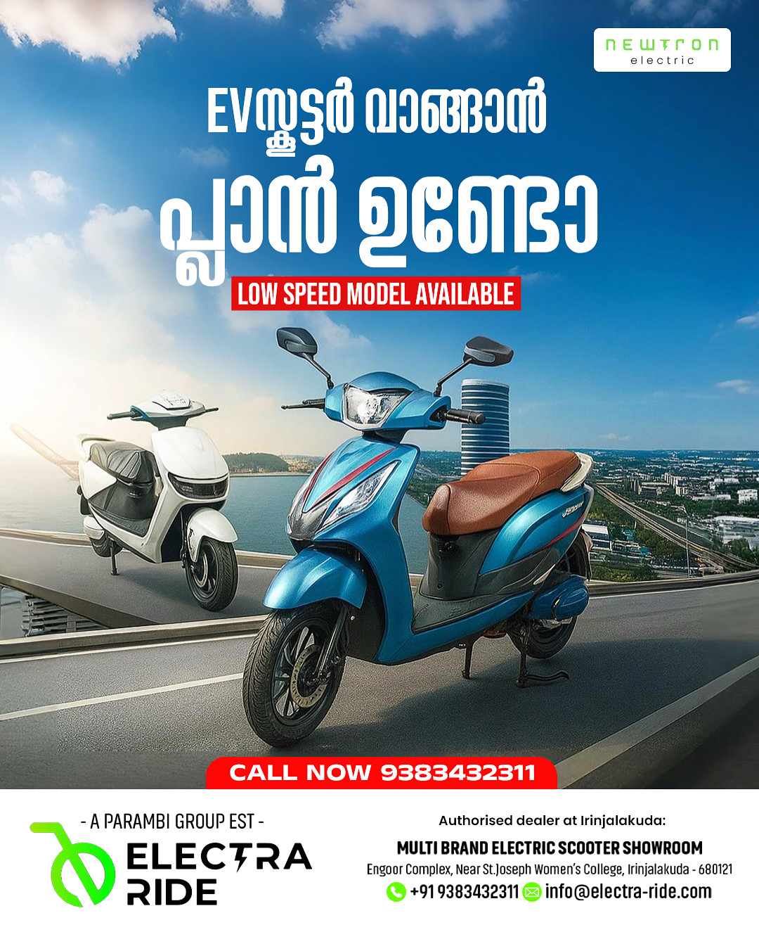 We proud to announce that we have opened our showroom in Irinjalakuda, the first ever Multi Brand Electric Scooter Showroom in the town. We have wide range of Electric scooters with various models, features, colors etc. for your comfort riding.